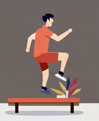 낮은 벤치나 상자 위로 한 발씩 올라가는 동작을 반복합니다. 한 다리로 10회씩 3세트로 운동합니다.